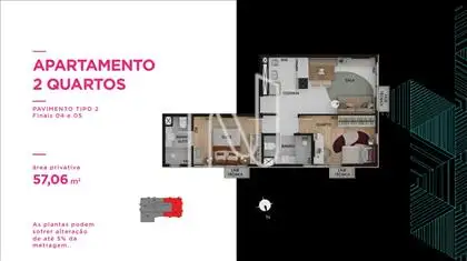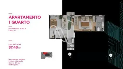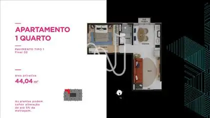 - Quartos e suítes piso laminado, exceto em unidades tipo Studio que o piso é porcelanato