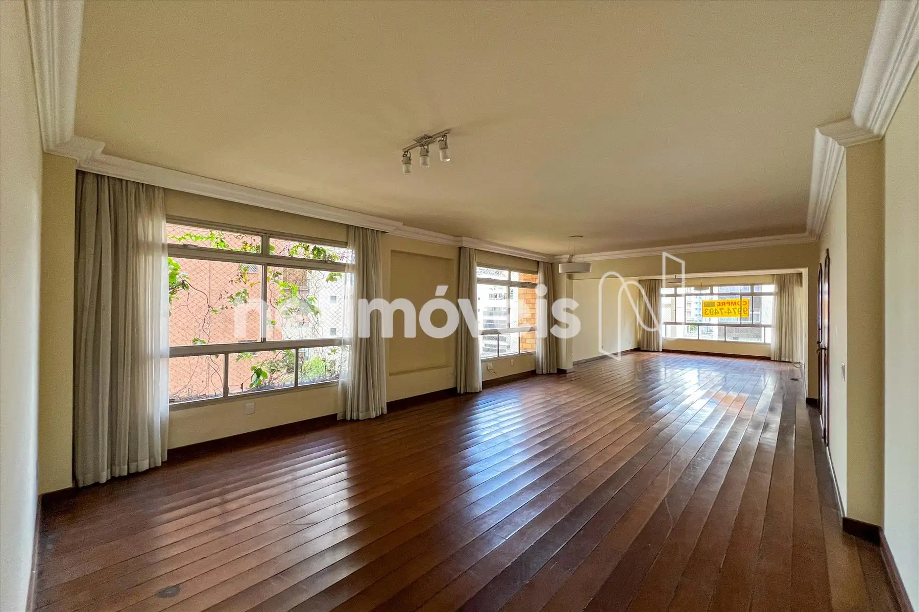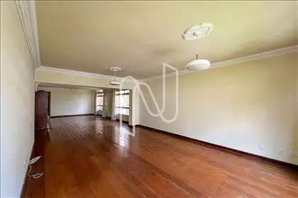 • Sala ampla, arejada, com espaço para até quatro ambientes e piso em madeira;