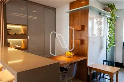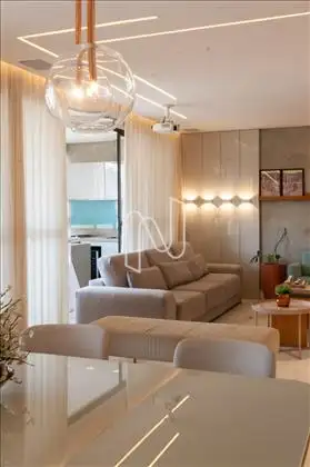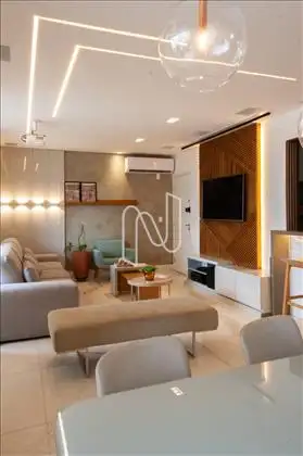Lindo apartamento com sala para 2 ambientes em mármore, teto rebaixado em gesso, iluminação planejada e ar-condicionado.