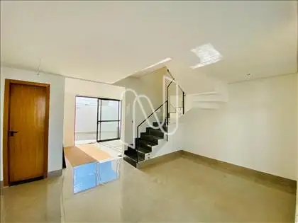 Casa geminada duplex de alto padrão no bairro Caiçara, com fachada imponente e acabamento em pedra ferro, unindo sofisticação, funcionalidade e excelente aproveitamento de espaço.