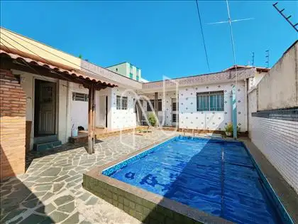 Casa linear em lote de 420 M², bem localizada, barracão independente nos fundos com piscina, ideal para investidores.