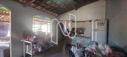 Há uma casa de 2 pavimentos com estrutura sólida, embora o acabamento seja simples: